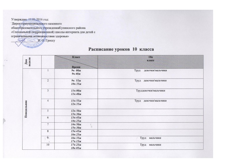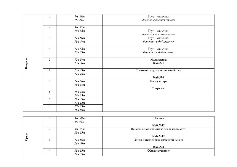 Расписание уроков